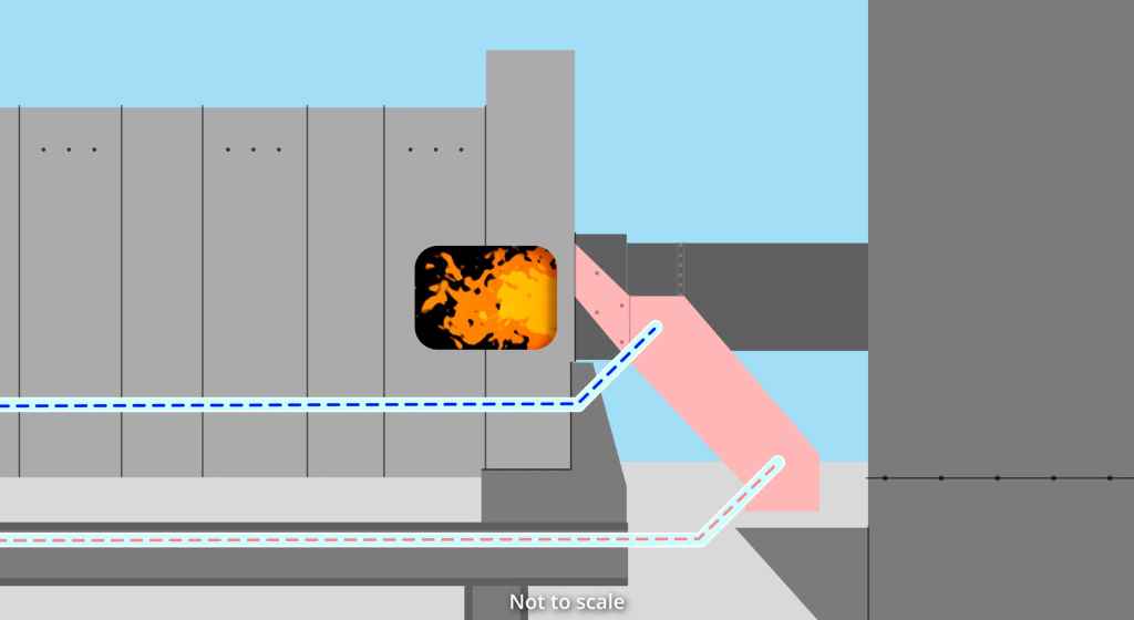 Dryer discharge chutes typically dissipate significant amount of heat through their surfaces. With internal temperatures ranging from 150°C to 300°C, we observed that the external temperature of the chute generally exceeds 160°C. This is where our engineers saw an opportunity to improve efficiency. They developed a solution using water heat exchangers placed in the chute, which circulate water through them and transfer the heat to the floors of the aggregate storage bays.